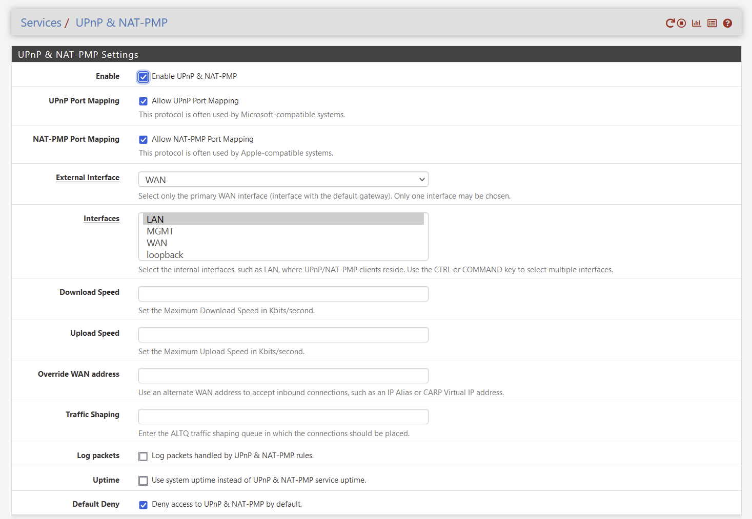 Services / UPnP & NAT-PMP